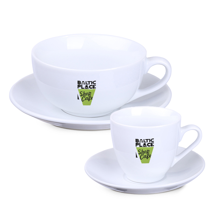 Set da caffè dalle forme arrotondate ben definite. È possibile scegliere liberamente il numero di elementi del set, con un ordine minimo complessivo di 24 pezzi.